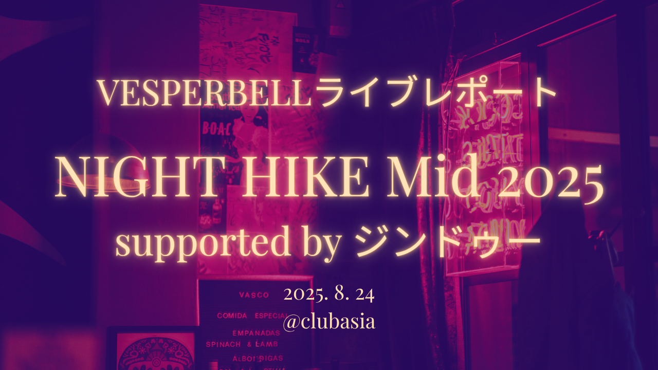 VESPERBELLが出演した「NIGHT HIKE Mid 2025 supported by ジンドゥー」(以下、「NIGHT HIKE」)のライブレポートです。