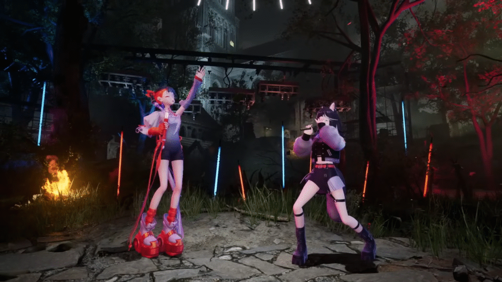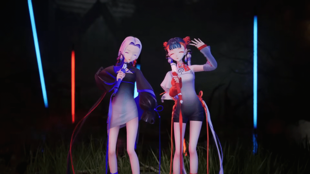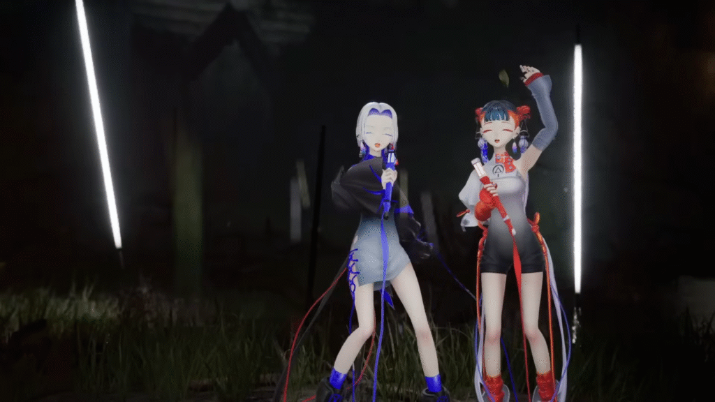 また、2サビの「足元でNo.1の 朝日が描いた影が」以降では、ヨミとカスカが向き合った状態で実際に自分の足元を見つめながら歌うという、VESPERBELLらしい特殊なパフォーマンスを披露しました。