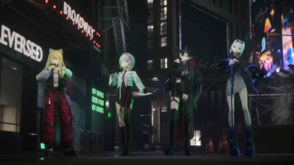 HACHIとのコラボパートを終え、全てのゲストアーティストとの歌唱を終えた龍ヶ崎リンは、再度LITAとヨミを呼び出し、このライブで初めて出演者の4人がステージに並びました。